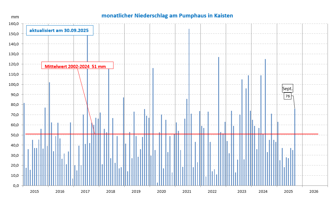 Der Niederschlag wird täglich am Pumphaus in Kaisten gemessen und dokumentiert.